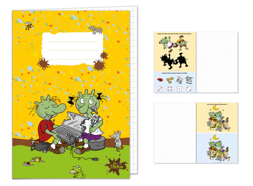 A5 Heft mit Rätseln in den 2 Umschlaginnenseiten32 Seiten · Linierung 7 · 7mm groß kariert · Etikett auf der Rückseite