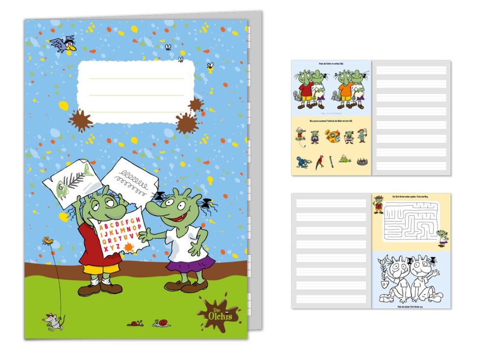 A5 Heft mit Rätseln und Ausmalbild in den 2 Umschlaginnenseiten32 Seiten · Linierung 1 · Etikett auf der Rückseite