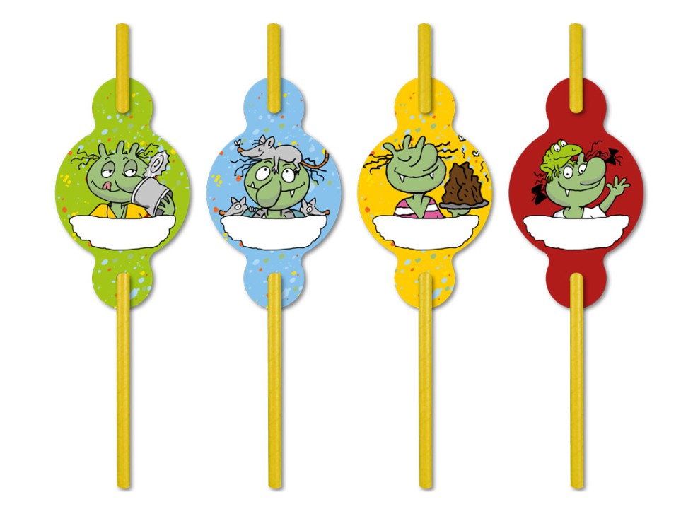 Die Olchis – Trinkhalme aus Papier mit Namensaufstecker