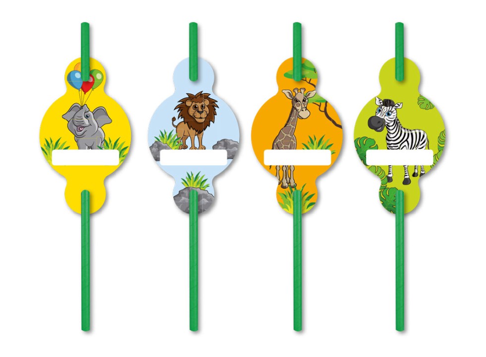 Zoo – Trinkhalme aus Papier mit Namensaufstecker