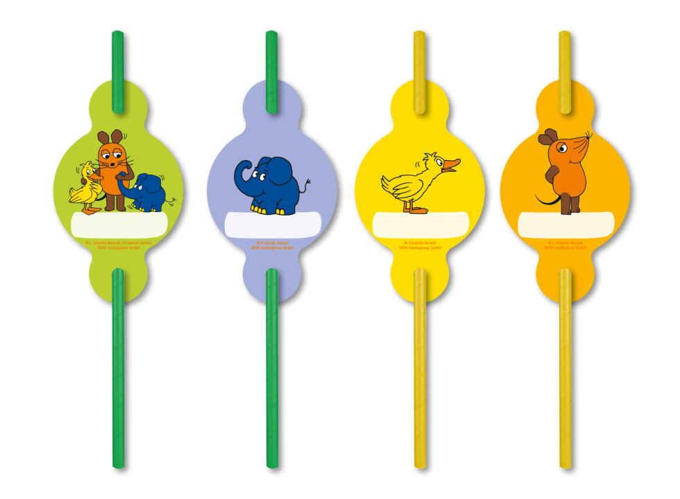Die Maus – Trinkhalme aus Papier mit Namensaufstecker