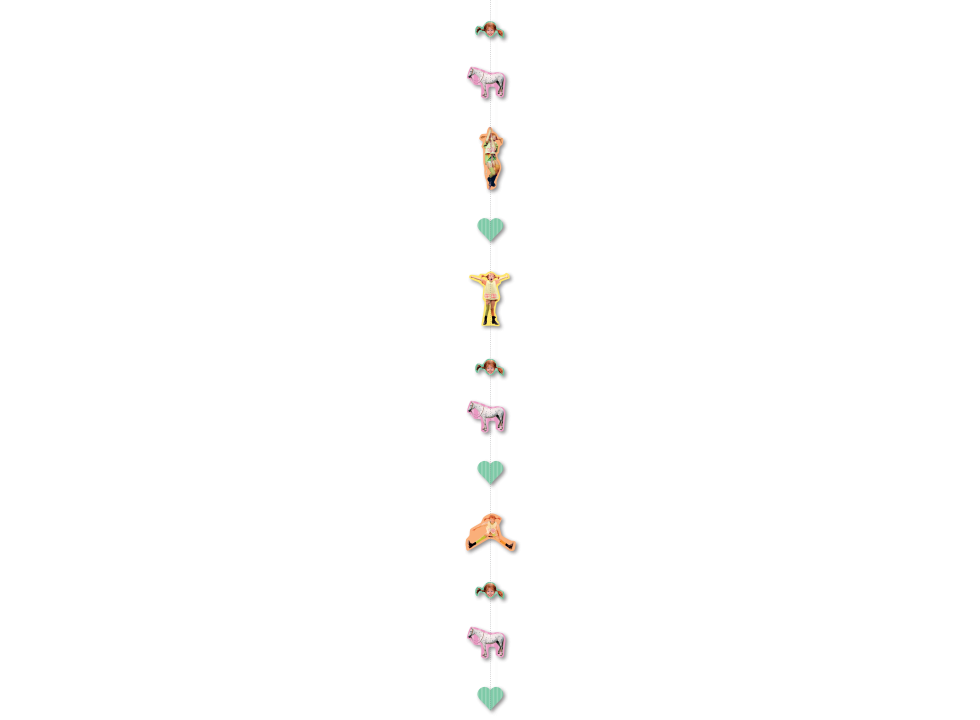 Deckenhänger mit kleinen Motiven, 13 Teile auf einer 1,5m Schnur verteilt, beidseitig bedruckt, zusammengenäht