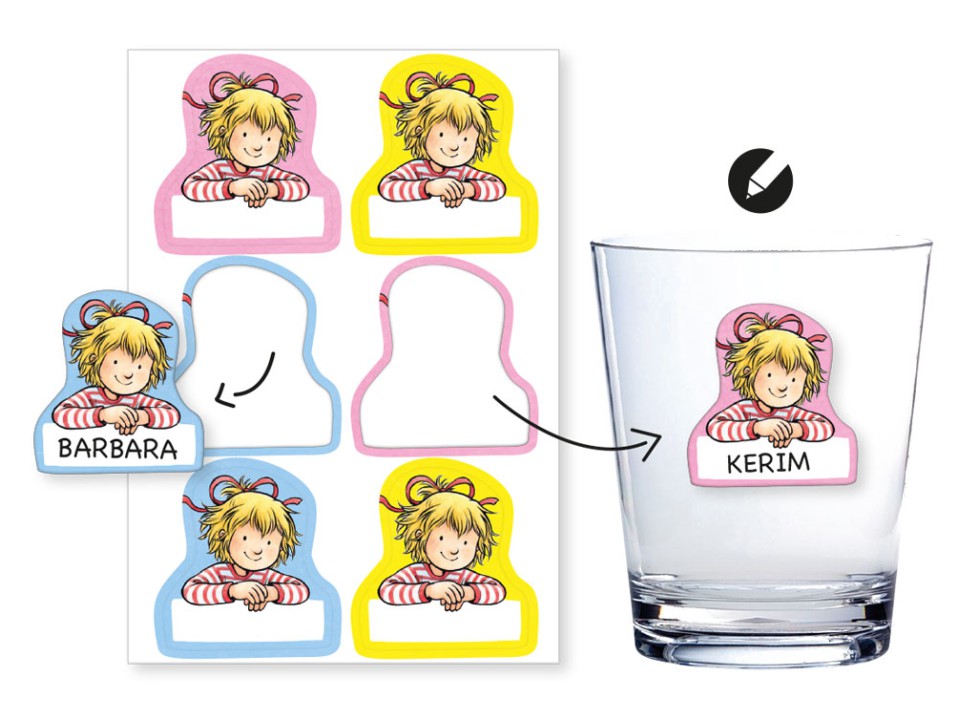 Namensaufkleber, 3x2 Motive auf einem A5 Haftpapier,