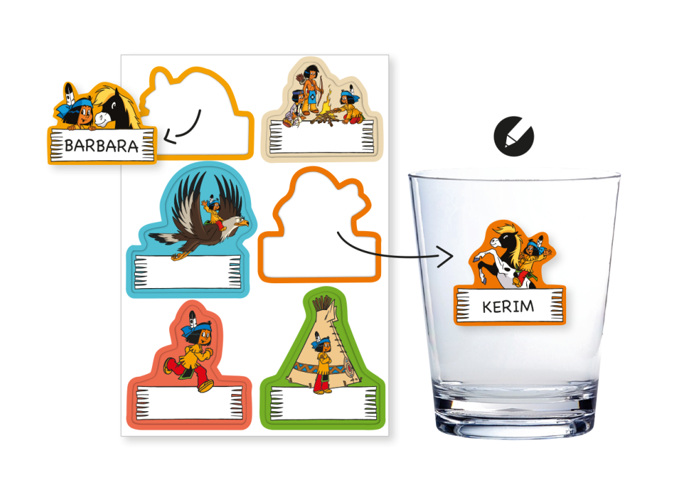 Namensaufkleber, 6 Motive auf einem A5 Haftpapier, jeweils ca. 6x 6 cm, Etikett auf der Rückseite