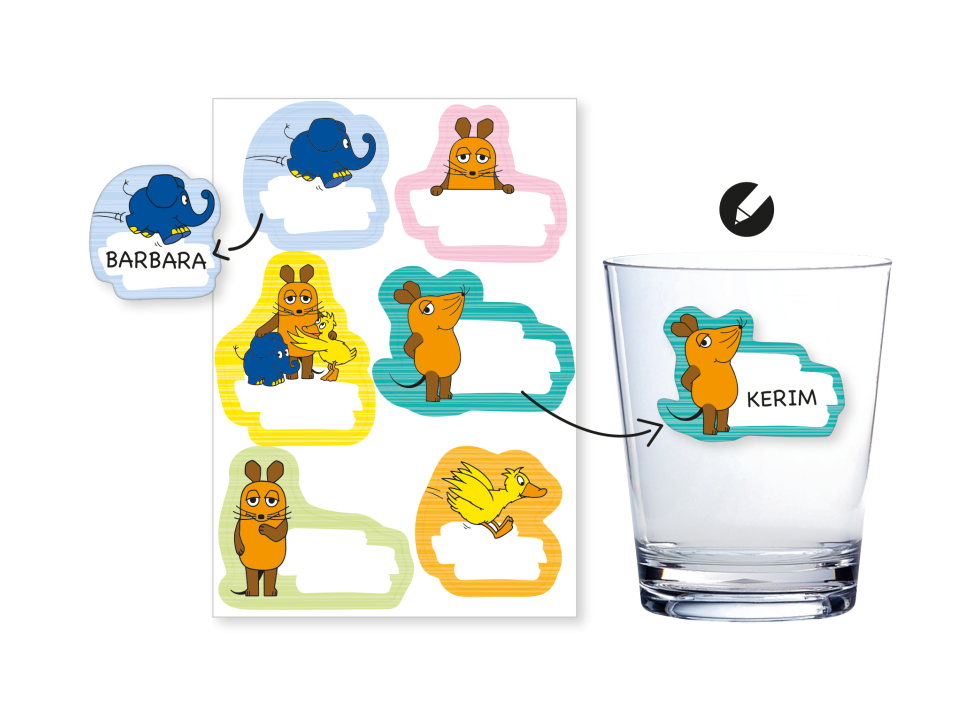 Namensaufkleber, 6 Motive auf einem A5 Haftpapier,